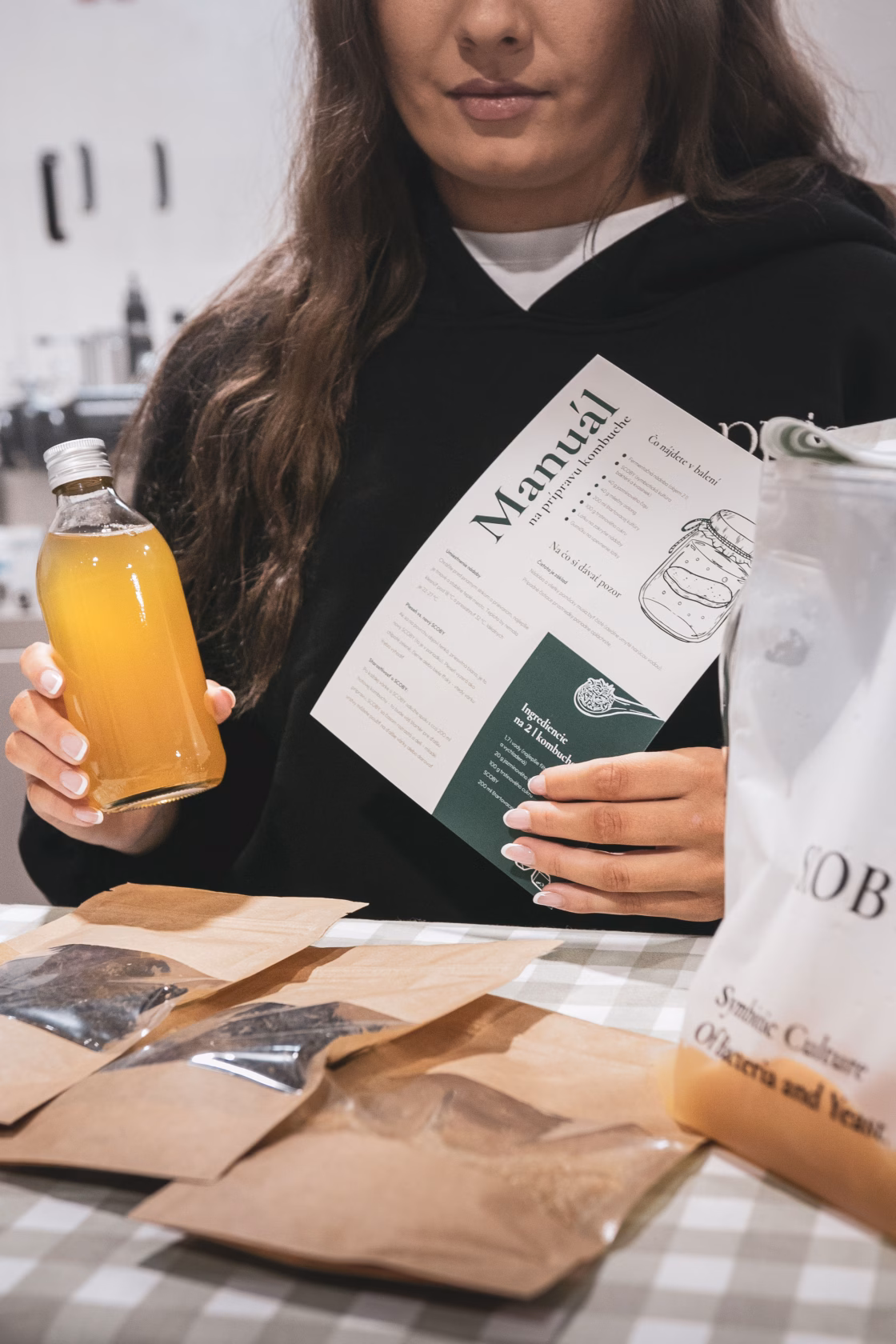 Pokud se chceš ponořit ještě hlouběji — znát přesné teploty, poměry, tipy na dokonalou fermentaci i to, na co si dát pozor, máme pro tebe něco speciálního. V našem Kombucha Kitu najdeš náš ověřený recept, podle kterého připravujeme kombuchu i my.